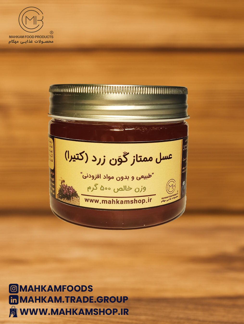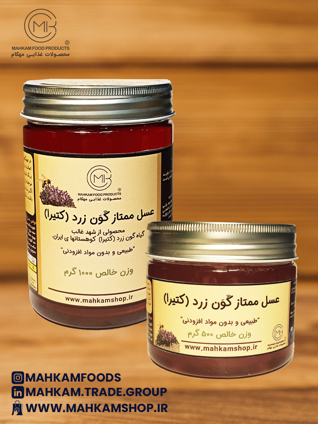 • نوع عسل: طبیعی و خام، تکگل یا غالب گون زرد
